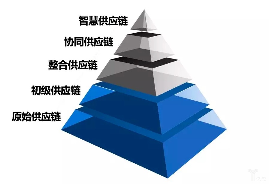 与此类似,为了区分供应链的发展水平和成熟度,笔者将其分为了五个层次。分别是原始供应链、初级供应链、整合供应链、协同供应链和智慧供应链: