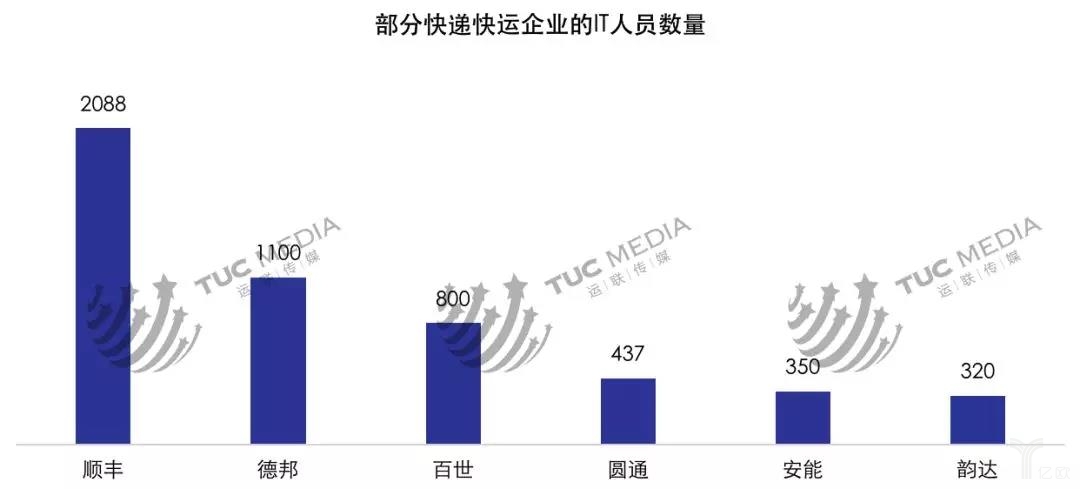 但是由于业务复杂性,专业的系统企业很难满足个性化的需求,绝大多数的大型物流企业依然采用自主开发的模式。如顺丰、德邦、百世的IT团队均超过千人或接近千人,超过了90%的专业IT公司的规模。