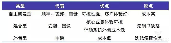 除了行业的巨头以自主研发为主外,其他物流企业的IT策略则呈现多元化的趋势,主要有以下三类:自主开发型、混合型、外包型。