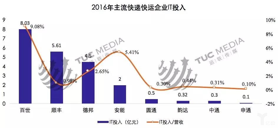 全国性的快递和快运公司在系统上头投入重金,打造智能化的系统来支撑业务,但各自间的差异还是比较大的,百世、德邦、安能、顺丰等在IT上的投入明显高于通达系。