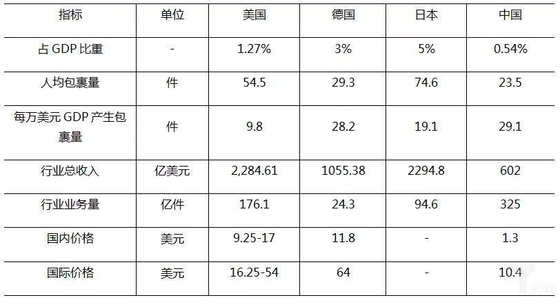 (三)邮政业在国内的产业层次高于美德日等发达国家