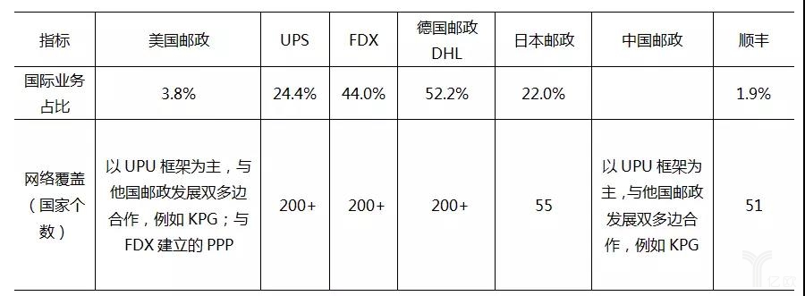 中美德日邮政业主要企业的国际业务及全球网络覆盖情况对比