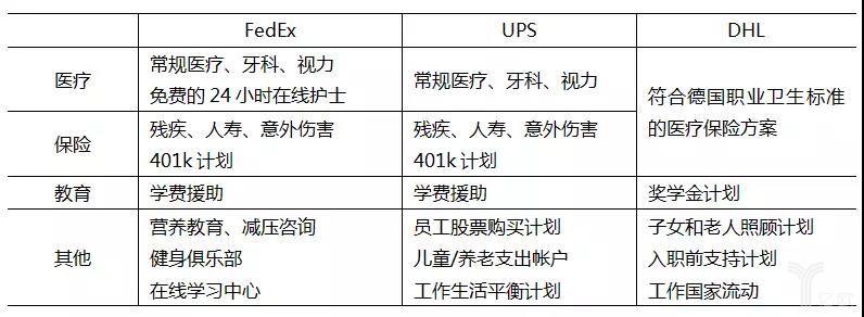 改善健康状况的主要做法为提供完备的医疗保障、周密的意外保险、慷慨的带薪休假方案等。UPS为员工提供的常规健康支持包括:医疗服务、牙科保健、视力保健、人寿保险、残疾保险、旅行意外保险、税前医疗支出和储蓄账户等。提高福利水平的主要做法是关注雇员家庭、支持职业发展、股权激励等。DHL共计为雇员子女提供了2000份奖学金,为4045名雇员提供了职业培训资金。