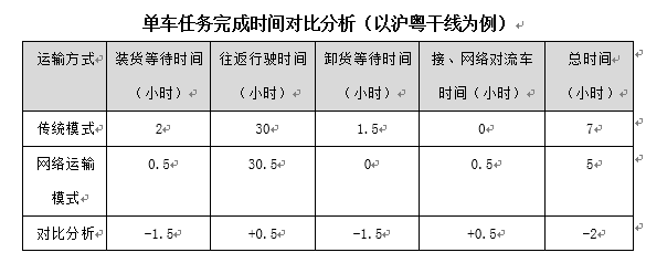 零担危险品网络运输信息化之后比传统运输方式减少了装卸货等待时间,按装卸货所需耗时约 2 小时计算,虽然增加了返程重车行驶时间和接、网络对流车所需时间,零担危险品网络运输信息化项目很大程度上缩短了单车任务完成时间。