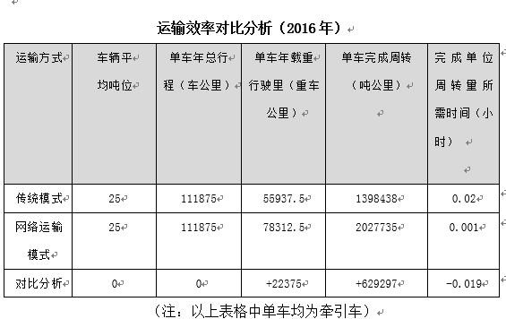 重载,60%则仅牵引车返回(减少 60%的无效运输),对于完成试点网络化运输项