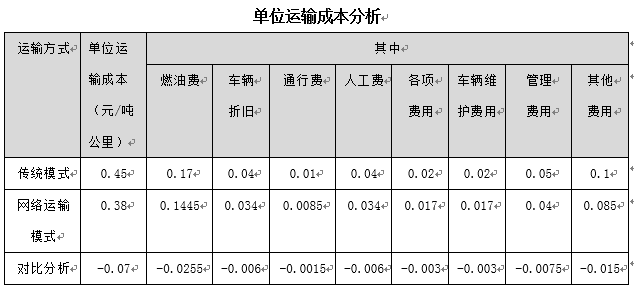 以上数据分析可以得出,零担危险品网络化运输项目通过减少空车行驶里程和无效运输产生的费用,提高周转量(吨公里),从而降低运输成本约 15%。