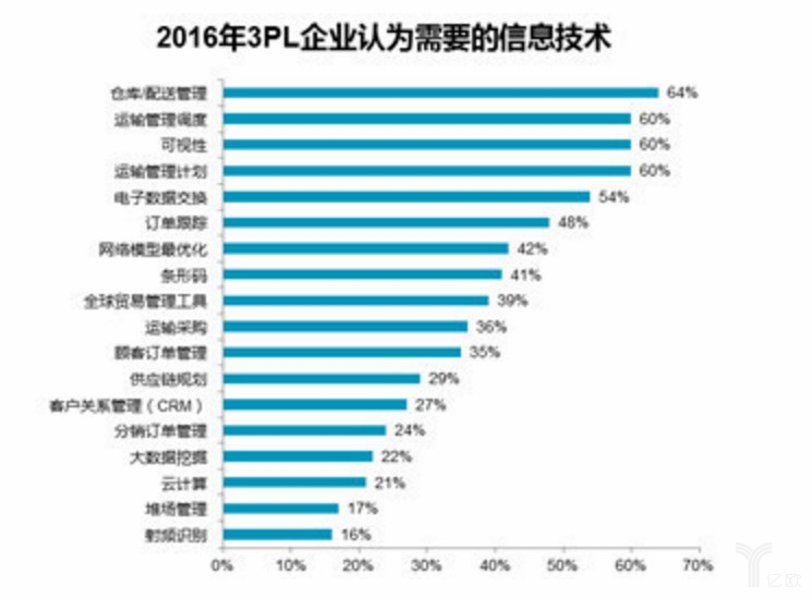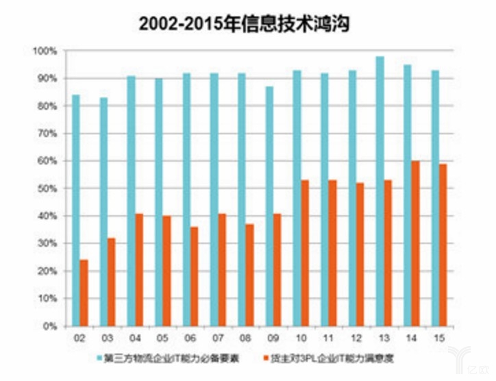 第三方物流企业越发重视信息技术应用和创新,加大信息技术投入,技术更新周期不断缩短、技术门槛越来越高。几年前红极一时的RFID射频识别、Barcode条码技术,如今只能算仓储运输的“入门级”技术。第三方物流企业对信息技术的重点投入,逐渐缩减了与服务企业在信息技术上的鸿沟。