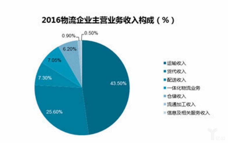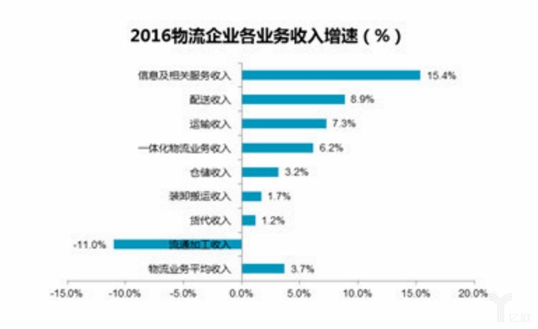 从2016年物流企业主营收入构成及增速来看,信息服务、一体化物流业务收入收入增长明显,分别增长15.4%和6.2%,增速分别提高了23.6和2.9个百分点,显示物流服务结构调整不断推进,智能物流为第三方物流企业开辟了新的收入增长点。未来一体化物流业务、信息及相关服务将成为重要收入来源。