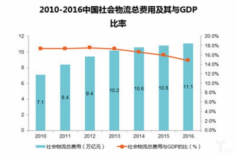 但从横向来看,我国物流业效率与国际先进水平差距依然较大。2016年我国15%的费用比率与12%的全球平均水平和10%的发达国家水平相比仍有差距。降本增效,提高物流运行质量是现阶段国内物流业发展的关键任务。