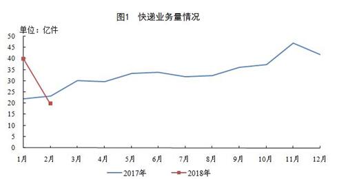 2月,全国快递服务企业业务量完成19.9亿件,同比下降15.2%;业务收入完成289.4亿元,同比下降1%。