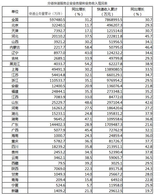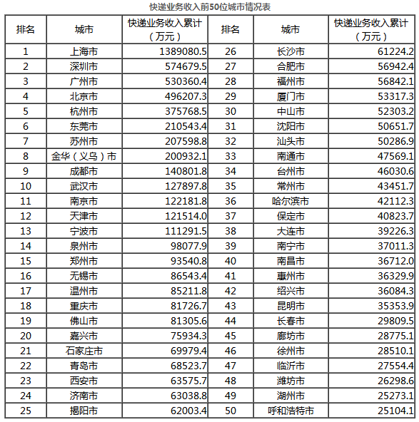 注:邮政行业业务收入中未包括邮政储蓄银行直接营业收入。