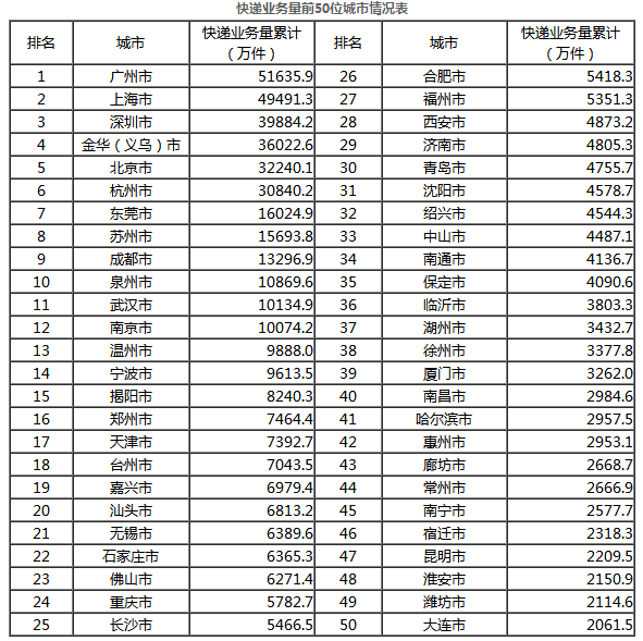1-2月,东、中、西部地区快递业务量比重分别为80.1%、11.9%和8%,业务收入比重分别为80%、11.1%和8.9%。与去年同期相比,东部地区快递业务量比重下降了0.1个百分点,快递业务收入比重下降了0.4个百分点;中部地区快递业务量比重下降了0.1个百分点,快递业务收入比重上升了0.1个百分点;西部地区快递业务量比重上升了0.2个百分点,快递业务收入比重上升了0.3个百分点。