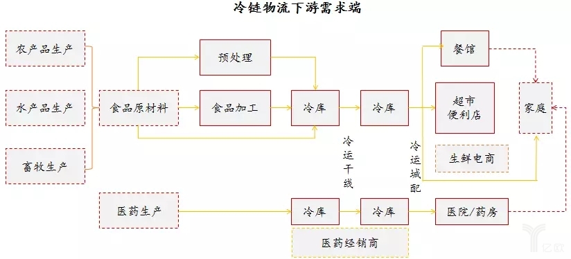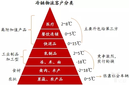 冷链物流需求较大的领域包括初级农产品(蔬菜、水果、水产品、肉制品、蛋奶等)、加工食品(速冻、冷饮、乳制品等)和医药(药品、疫苗)等特殊商品。