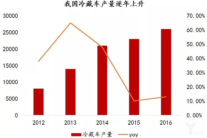 作为冷链基础设施,冷藏车发展预期将加速。冷库在发达地区建设逐渐饱和,但是冷藏车整体体量依然较小。