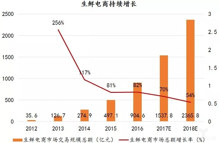 生鲜电商近年备受资本和市场青睐,不断涌出,生鲜网络零售额快速增长。同时,根据艾瑞咨询的雷竞技下载最新版 ,生鲜电商规模从2012年的35.6亿元,增长到2015年的497.1亿元,预计2018年增长到2356.8亿元,年复合增长率达到101%。由于生鲜电商产品冷链运输比例远高于初级农产品整体平均水平,这将是带动总体冷链率上升的关键因素,生鲜电商需求也将支撑冷链物流市场的增长下限。