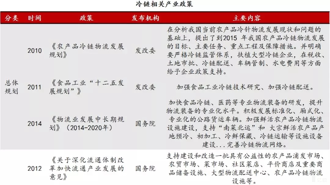 政策支持为冷链物流行业发展提供了有利的环境,降低农产品冷链物流成本,支撑冷链物流基础设施的建设,支持建设全程冷链物流和覆盖农产品收集、加工、运输、销售各环节的冷链物流体系。