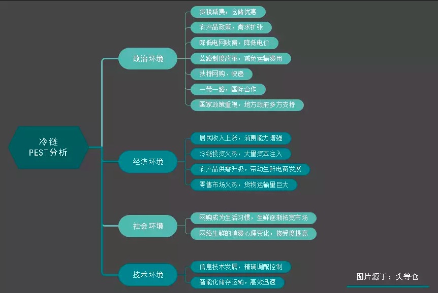 但除此之外冷链变热的因素还有政治、经济、社会以及技术环境的变化,如下图所示,不再赘述。
