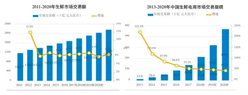 以目前市场最火热的生鲜电商为例,2017年的生鲜电商成交额达到16000亿,而在未来两年内,预计还将增长到22000亿左右。