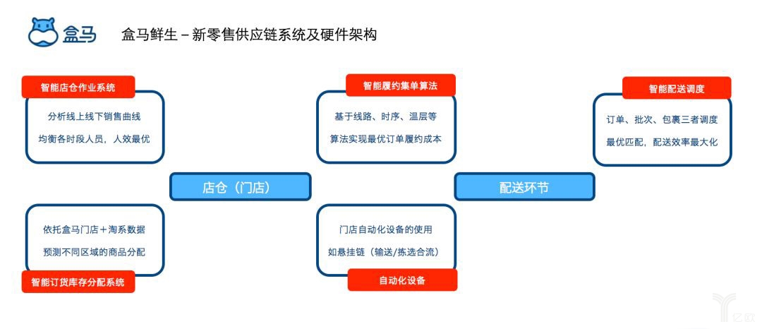 “新零售新物流到底是什么,是不是说店仓一体,有了悬挂链就行?我们内部认为这个是表面的,新应该是基于大数据,基于移动互联网LBS的分析”。基于此盒马推出了四个智能化,一个自动化,从而带来分布式网络里最核心的——前置仓的物流能力的提升。