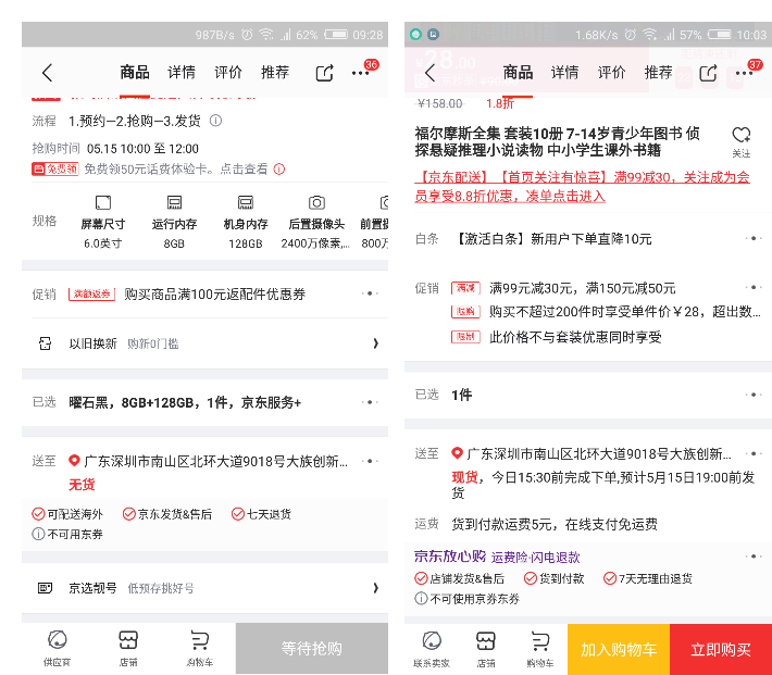 我们知道抢购商品由于货源问题,有时候发货时间是不确定的,到货时间就无法评估,这种情况下,抢购开始后,预估时间可以改为现在付款大概什么时候发货(关于预约抢购可以看我的另外一篇文章:《电商营销产品策划——预约抢购》)。