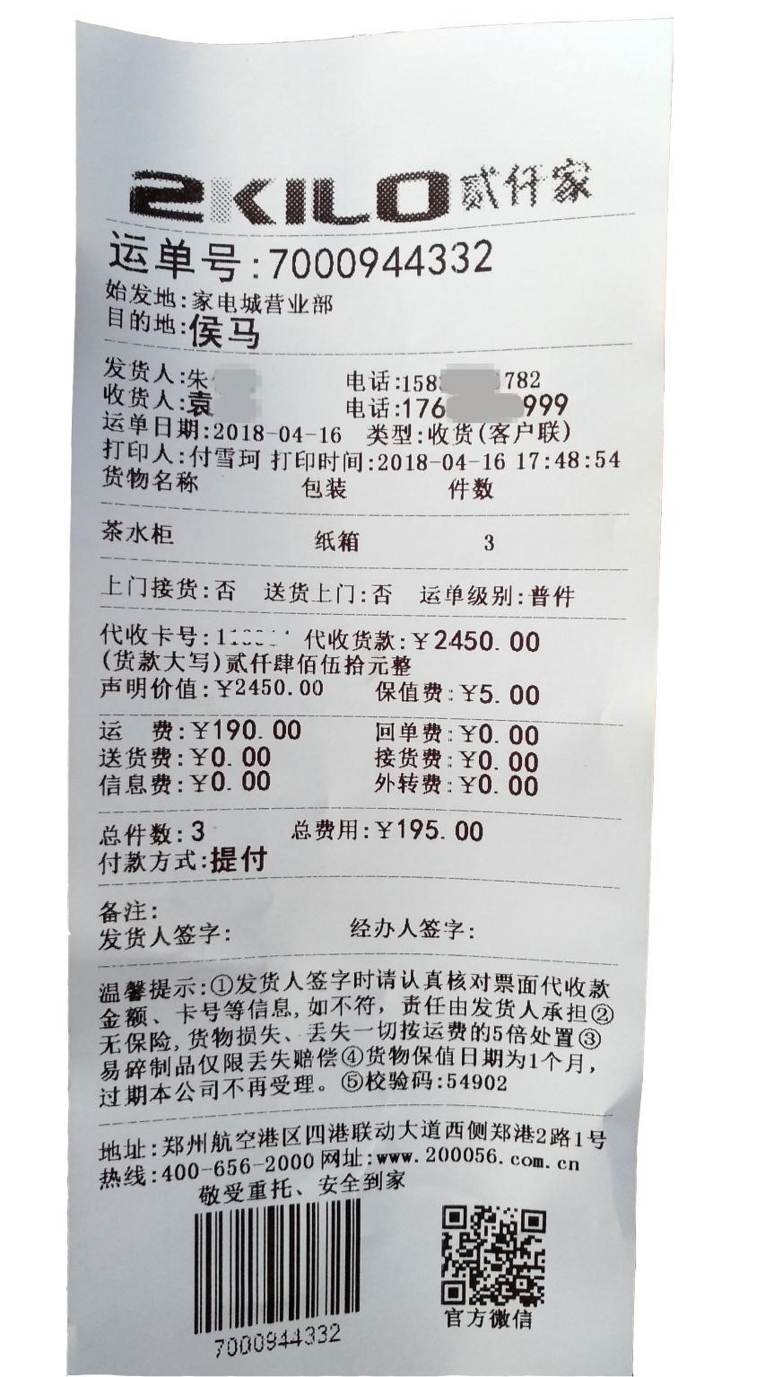 包括机打票据、PDA的使用,以及网站、公众号查询等服务的增设,客户对贰仟家的形象和认知有了大的提高,用户体验感增强,比起其他物流公司,贰仟家让客户感受到更多的安全和放心。
