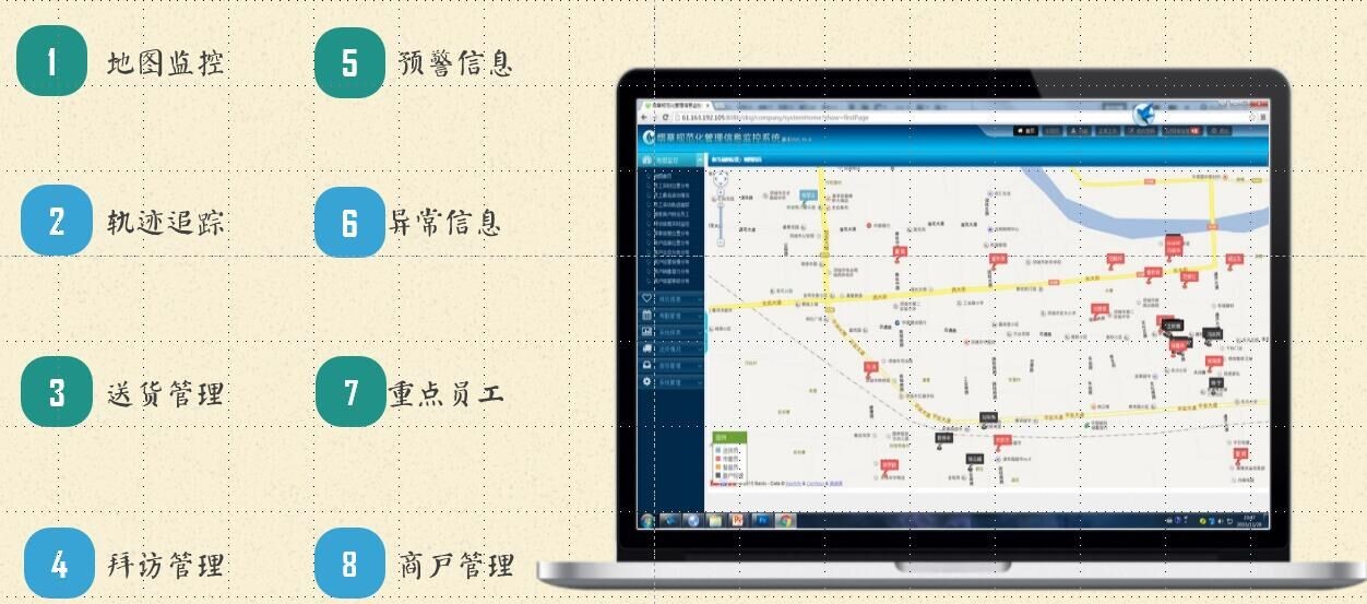 为更好地完成规范送货作业任务,周口市公司卷烟物流配送中心积极探索信息化、智能化、高效低成本的规范送货服务技术保障措施,烟草规范化信息监控管理系统,较好地解决了现场拍照、网络传输和留存备查等问题,有效保障了规范送货服务的实现。该系统由移动终端平台和服务器端平台两部分软件组成,该软件系统融入二维码、GIS、GPS、云端存储交换、及时通信等软硬件技术,实现了考勤、定位、录音录像、扫码、拍照、意见采集等功能。可以通过该系统对送货完成情况进行精准查询监控。利用GPS和GIS技术的运用,实现了商户位置定位、员工工作轨迹查询、商户位置导航等原来不可能实现的功能,优化整理原有工作内容,实现了相互监督、公开透明、规范管理等功能,真正做到了人员动态、工作内容、工作质量实时监控,加入了自定义报表实现督查考评自动化、透明化,加入了重点员工、重点商户自动分析归类实现了管理有重点等功能。