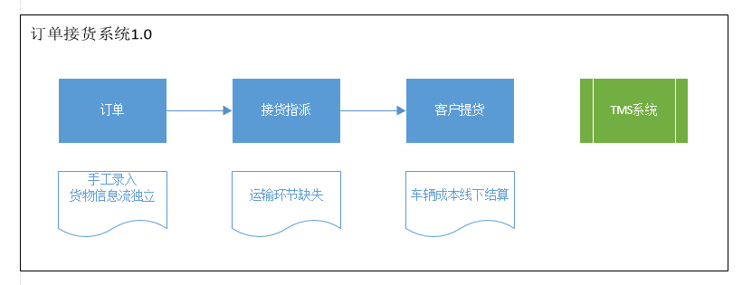 1、原有接货系统与TMS系统各自独立,数据没有互通,形成信息孤岛。