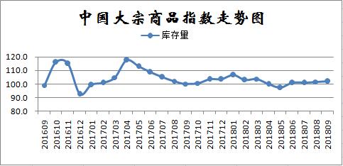 2018年9月份,大宗商品库存指数为102.0%,连续四个月上升,为近六个月以来的最高,显示当前国内大宗商品市场去库存压力持续加大。各主要商品中,除成品油库存继续减少外,其余品种均有所增长,特别是钢铁和化工库存增速加快。