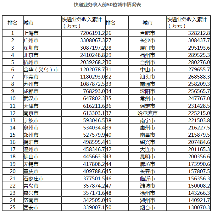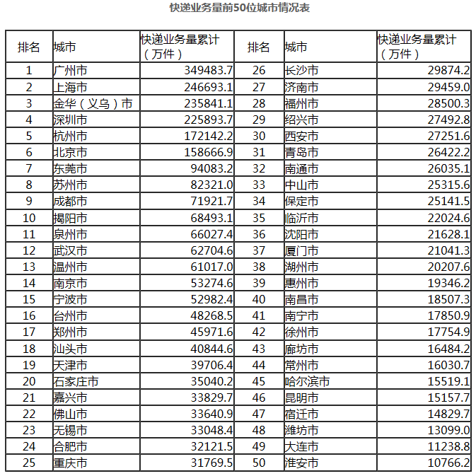1-9月,东、中、西部地区快递业务量比重分别为80%、12.1%和7.9%,业务收入比重分别为80%、11.2%和8.8%。与去年同期相比,东部地区快递业务量比重下降了1个百分点,快递业务收入比重下降了0.9个百分点;中部地区快递业务量比重和快递业务收入比重均上升了0.4个百分点;西部地区快递业务量比重上升0.6个百分点,快递业务收入比重上升0.5个百分点。