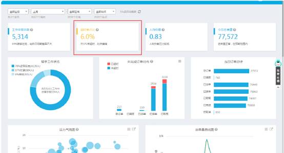 在实时监控中,可查看未完成单的超时单占比、单量和占比状态。