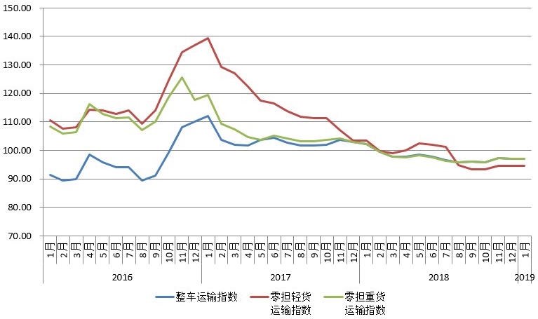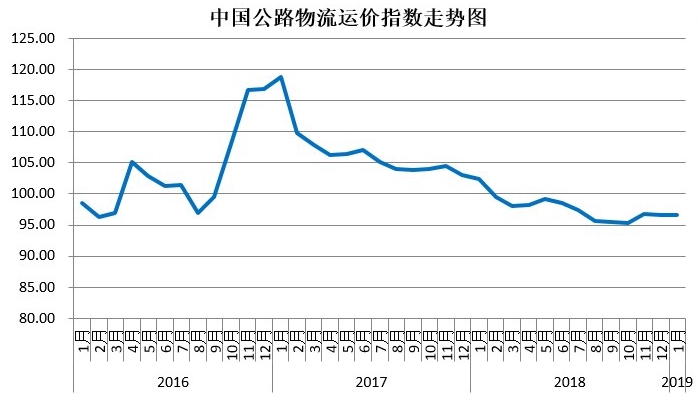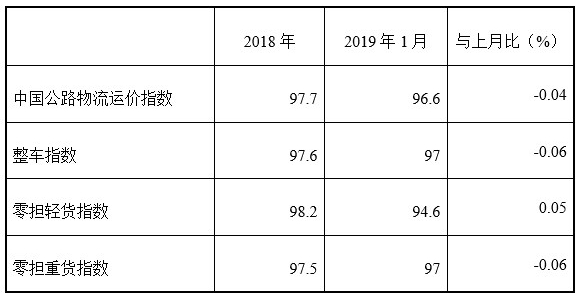 由雷竞技电竞竞猜网 和林安物流集团联合调查的2019年1月中国公路物流运价指数为96.6点,环比回落0.04%。本月月内指数波动幅度较小,各周指数保持在965点至966点之间。