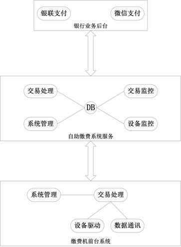 缴费机系统整体结构图如上图所示,系统主要包含自助缴费系统服务和缴费机前台系统两部分。