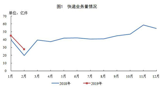 2月,全国快递服务企业业务量完成27.6亿件,同比增长38.7%;业务收入完成350.2亿元,同比增长21%。