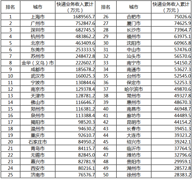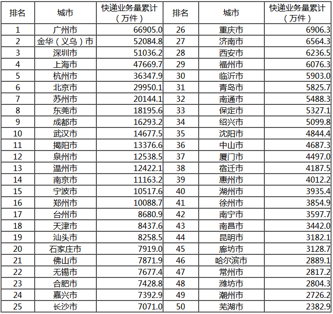 1-2月,东、中、西部地区快递业务量比重分别为79.1%、13%和7.9%,业务收入比重分别为79.5%、11.5%和9%。与去年同期相比,东部地区快递业务量比重下降了1个百分点,快递业务收入比重下降了0.5个百分点;中部地区快递业务量比重上升了1.1个百分点,快递业务收入比重上升了0.4个百分点;西部地区快递业务量比重下降了0.1个百分点,快递业务收入比重上升了0.1个百分点。