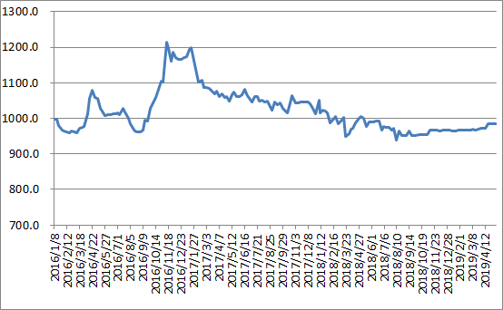 本周(2019年5月6日-5月10日),由雷竞技电竞竞猜网 和林安物流集团联合调查的中国公路物流运价指数984.56点,环比回落0.04%,连续三周小幅回落,其中上周公路运价指数为984.98点。
