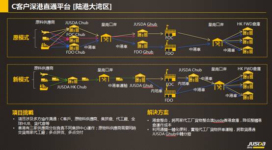 依靠在深港大湾区成熟的网络资源和成熟的平台化运营模式,借助一体化通关的便利,准时达向C客户推介了直通平台的概念,将分散的货物和数据统一集成,协同管理。