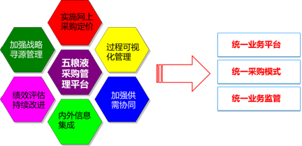 对外:网上询报价、网上招投标、网上综合竞价、采购订单、发货通知、结算管理与供应商,承运商的多方协同,提高五粮液与供应商的协同效率。