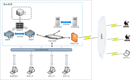 安全性:由于用户所有数据和文件都在该系统上,该系统需要具有非常高的安全性,除软件自身要有各种安全措施外,还需要提供硬件安全方案,如身份认证技术、防火墙、入侵防御系统等。