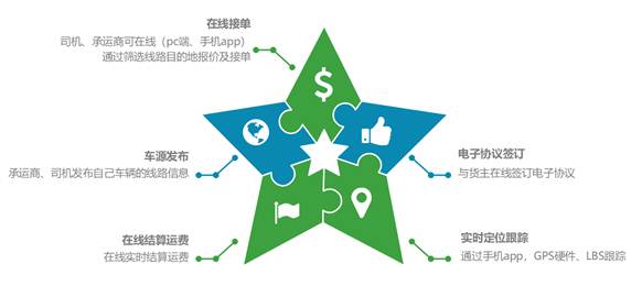 3、依托无车承运试点工作,建立无车承运平台,实现车货匹配、交易过程中的定金的收退、运价、运费的结算与支付以及信用评价体系等全过程透明化、清晰化,减少或杜绝物流行规中的一些不合规范的行为,打造清洁物流业态。