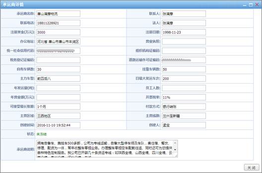 平台与承运商(物流公司)合作将运输计划分给它们,由承运商提供车辆在平台注册完成运输任务。该功能主要包括承运商查询功能。
