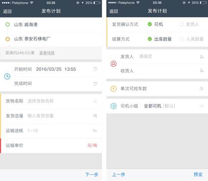 发布运输计划:平台支持在PC端和移动端发布运输计划,如下图:
