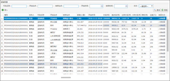 运输计划查询:支持按业务机构、开始站点、结束站点,开始时间、结束时间执行状态等综合条件进行查询,如下图所示: