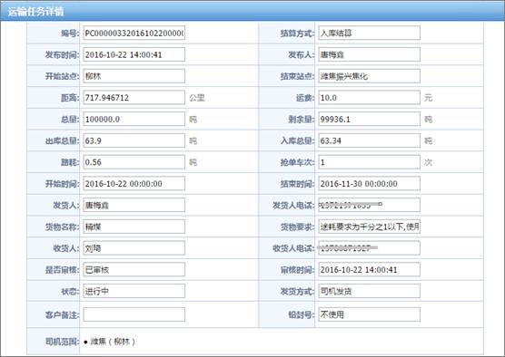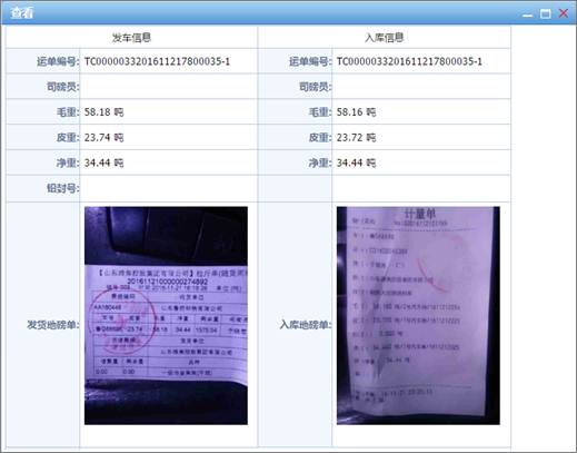 电子运单:平台信息透明,平台与司机均可查看运单的装卸货数据及上传的地磅单照片,如下图为平台管理系统中记录的运单信息。