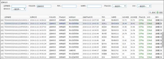 运单查询:运单查询列表功能,支持按运单编号、司机名称、车牌号、任务进度、状态等查询,如下图:
