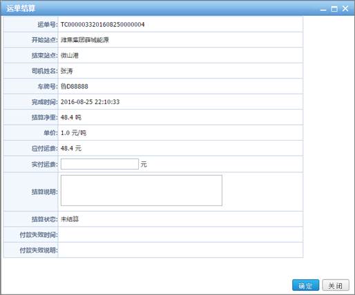 货损货差审核:运单审核人员根据记录的装货、卸货记录数据,审核货损差值,并生成结算单,根据货损值计算应付运费。