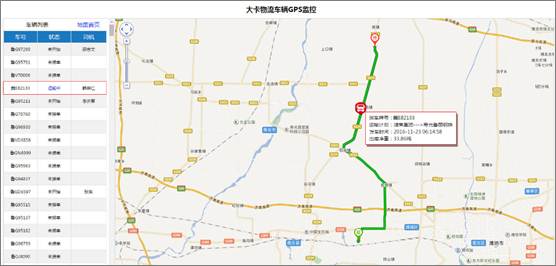 平台在PC端提供监控车辆执行的运单信息、位置信息功能,如下图;