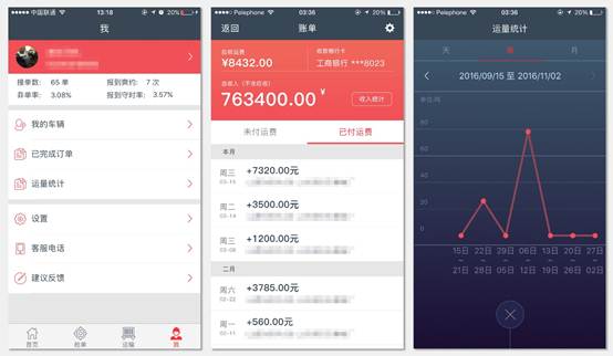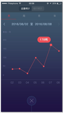 司机版统计(移动端):为司机提供按天、周、月的运量统计曲线图
