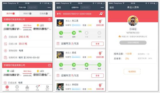 通过信息化,使得运力信息在平台聚焦;同时,大宗运输合同单次体量较大,可以提供大量的用车需求,多个运输合同可满足大量的卡车司机找货需求,司机可自行根据系统提供的位置远近、道路拥堵、场地设备情况选择承运线路,将原来的每天1.5-2车次,提高到2-2.5的车次,大大提高了车辆周转效率。