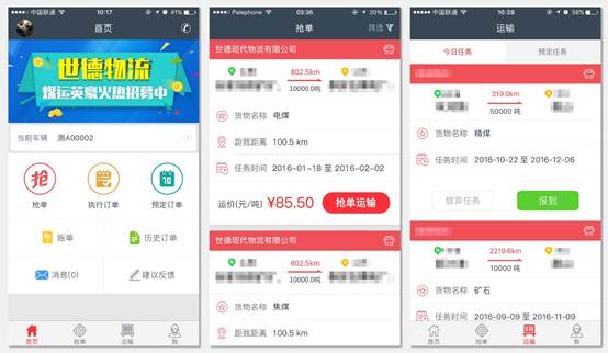 平台主要通过物流版APP和司机版APP分别为物流公司和实际承运人提供服务。