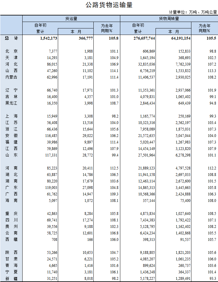 2019年5月公路货物运输量